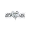 The centerpiece is embraced by a sculpted crossover band, where one side is fully set with pavé-set round brilliant stones, adding layers of shimmer and depth to the design. The entwined silhouette evokes the eternal intertwining of two hearts, making this ring a poetic choice for engagements, anniversaries, or declarations of love. An unforgettable statement of affection, beautifully expressed in every detail.