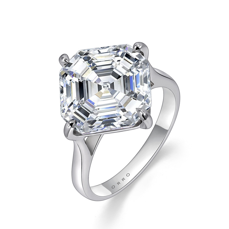 Comes in a 8.55ct Brilliant Asscher Cut center stone.