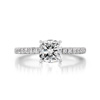 A timeless masterpiece of refined elegance, the ORRO Loretta Ring showcases either a 1.0ct, 1.45ct, or 2.15ct cushion-cut diamond, gracefully held by four classic talon prongs. The delicate band is meticulously paved with 24 melee diamonds, extending to the Âľ mark, adding a brilliant sparkle that complements the center stone. The elevated setting of the prongs allows the cushion diamond to take center stage, while the gentle curvature of the prongs and seamless connection to the band ensures the ring is stackable with a wedding band. This exquisite design represents both enduring love and sophisticated style.