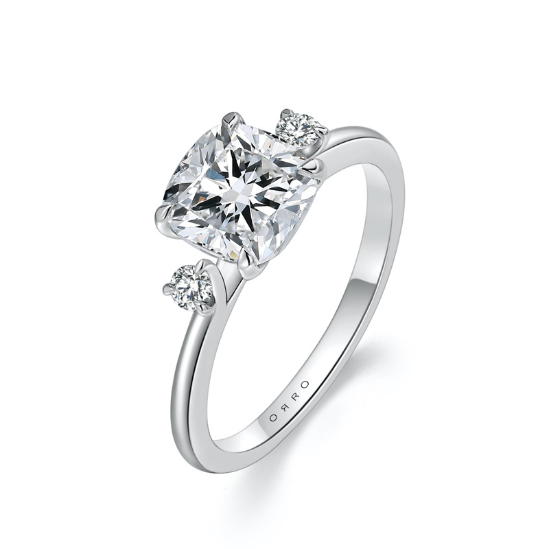 The ORRO Lorna Ring is a stunning trilogy engagement ring that artfully combines classic elegance with a modern twist. Featuring a cushion-cut center rock available in 1.00ct, 1.45ct, or 2.15ct options, this ring is flanked by two round brilliant diamonds on each side. The unique design creates an illusion of the side gems "floating," adding a contemporary flair to the timeless Trilogy setting. Perfect for those who appreciate both traditional beauty and innovative design, the ORRO Lorna Ring is a testament to refined sophistication.