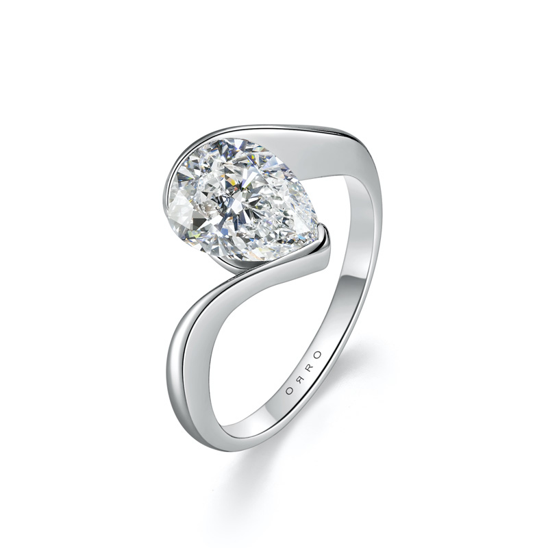 The ORRO Thena Ring is a stunning solitaire piece that showcases a captivating 1.80ct pear-shaped diamond, celebrated for its elegance and unique silhouette. What sets this ring apart is its artistically twisted band, which adds a modern touch to a classic design. The band is flat on both sides, wrapping gracefully around the diamond—one end elegantly encircling the rounded top, while the other cradles the pointed bottom.